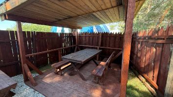 - В стоимость услуг включено: беседка, мебель на ваше количество гостей (столы, стулья или скамейки), мангал, бак для мусора, 1-дневный пропуск на территорию парка для одного легкового автомобиля, пользование в порядке очереди инфраструктурой парка и пляжа (стационарные туалетные комнаты, раздевалки, душевые), а также различные активности (волейбол, баскетбол, пинг-понг, бадминтон).
